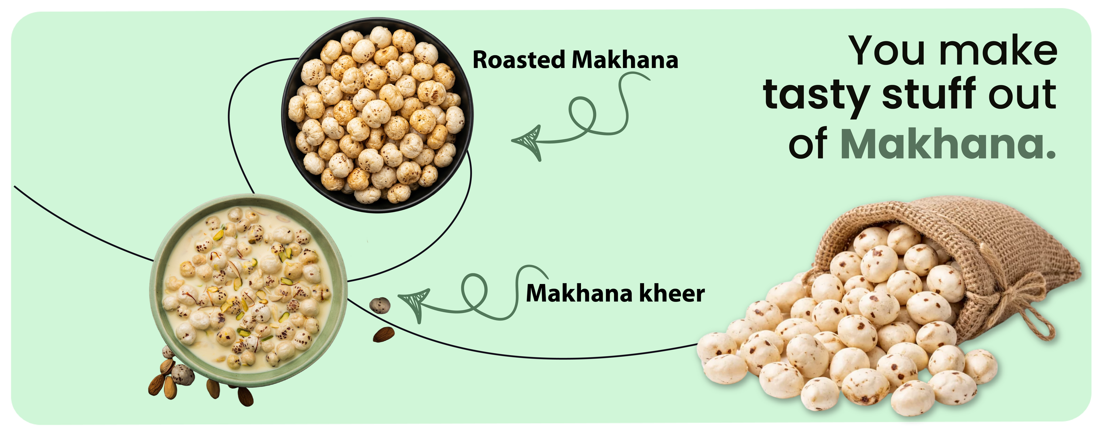 In the still waters of natural ponds, a remarkable superfood begins its journey. Makhana that’s light on calories, big on taste and perfect for keeping you going all day! Naturally Light, Guilt-Free and Surprisingly Delicious. Just makhana packed with protein, fiber and natural goodness - your everyday smart snack.